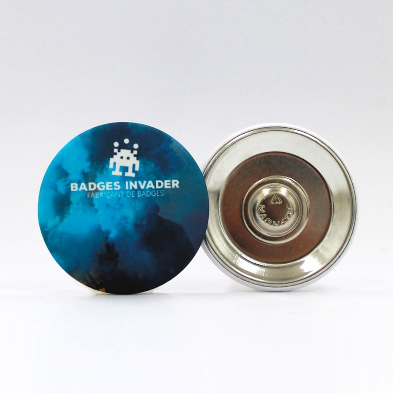 N'oubliez pas de sauvegarder votre personnalisation pour pouvoir l'ajouter au panierSélectionnez vos options, finition brillante ou mate ainsi que votre attache épingle ou aimantée. Personnalisez votre badge rond 45 mm dès maintenant avec votre visuel !